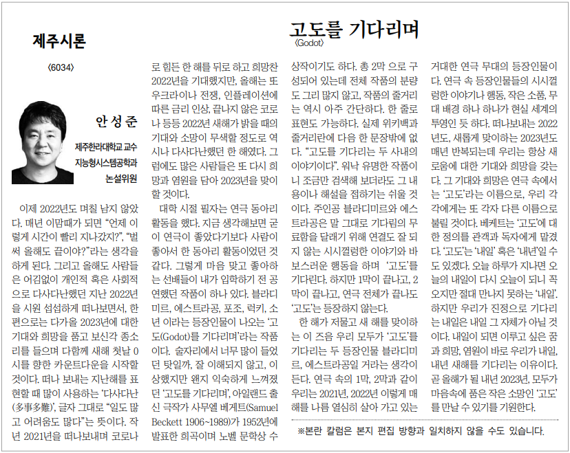 이제 2022년도 며칠 남지 않았다. 매년 이맘때가 되면 “언제 이렇게 시간이 빨리 지나갔지?”, “벌써 올해도 끝이야?”라는 생각을 하게 된다. 그리고 올해도 사람들은 어김없이 개인적 혹은 사