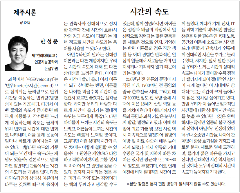 시간의 속도 - 제주일보